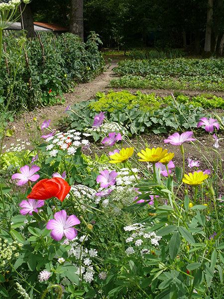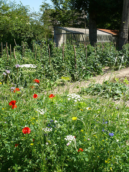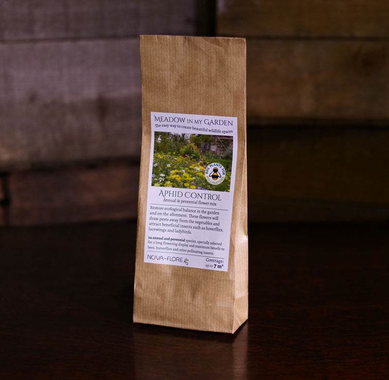 The design of this meadow mix focuses on drawing pests away from the vegetable garden, and at the same time, attracting large numbers of predators, beneficial insects such as hoverflies, lacewings, ladybirds, parasitic wasps etc, that help to restore ecological balance in the garden and on the allotment.