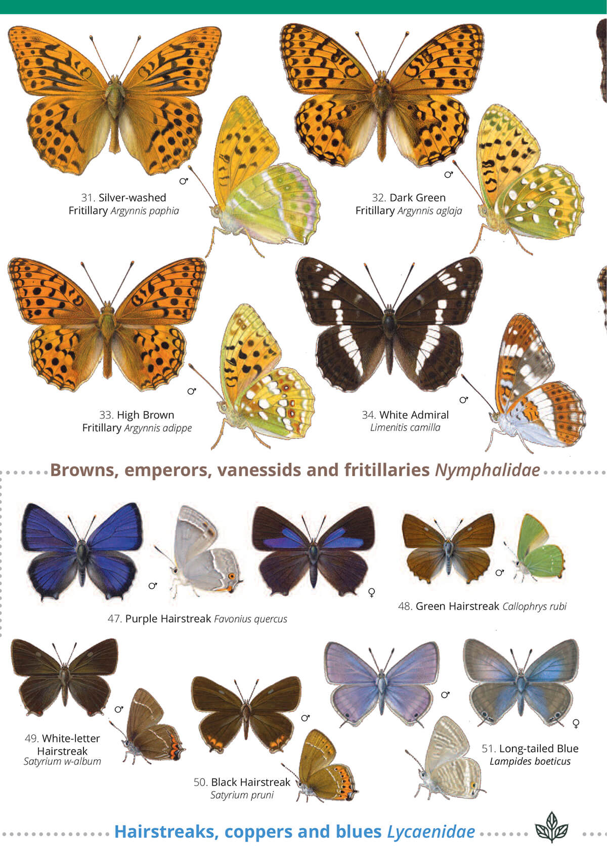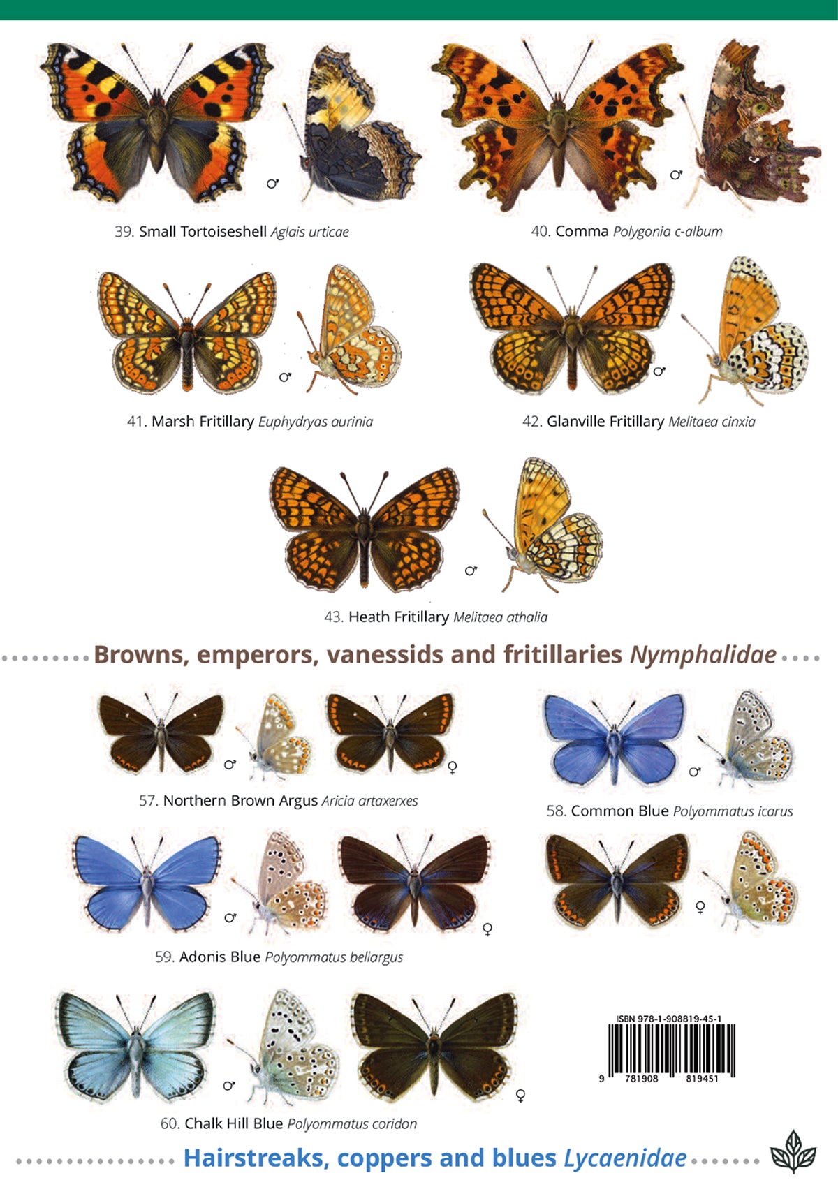 As well as the paintings, the reverse side of the Butterfly guide includes concise identification notes for each species. This text covers the key characters to look out for, plus flight period, habitat and range. Also indicated are those species which now have legal protection in the UK.
