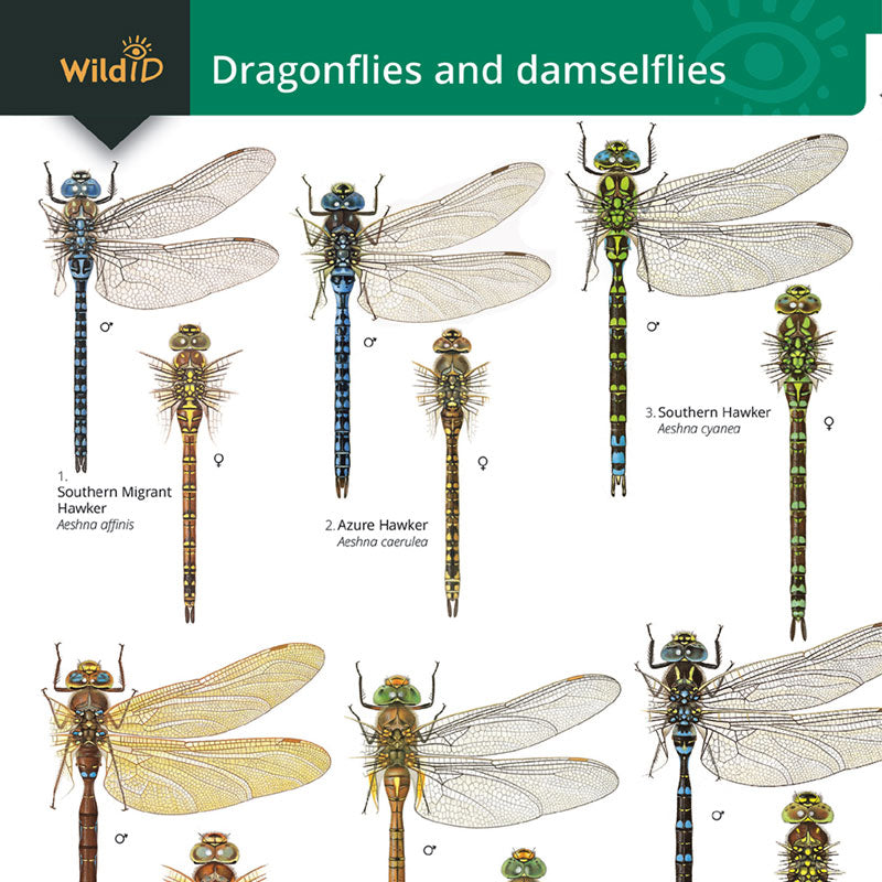Dragonflies and damselflies adults fly during the day, especially in the summer sunshine. Most species fly near freshwater, like rivers, ponds and lakes. With practice most species can be recognised in the field, even when in flight. Since blue damselflies are sometimes a little tricky, the guide includes close-up views of the nine similar species. The second abdominal segment is especially important for distinguishing these damselflies.