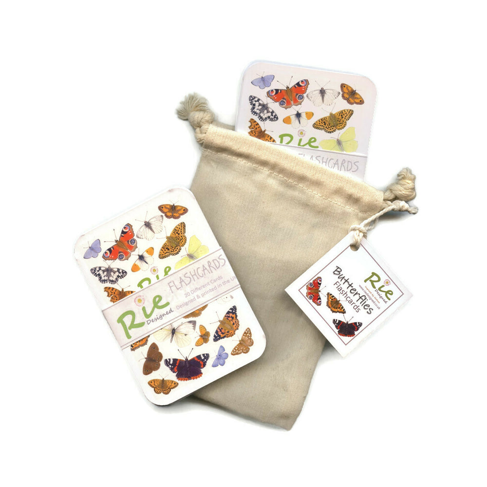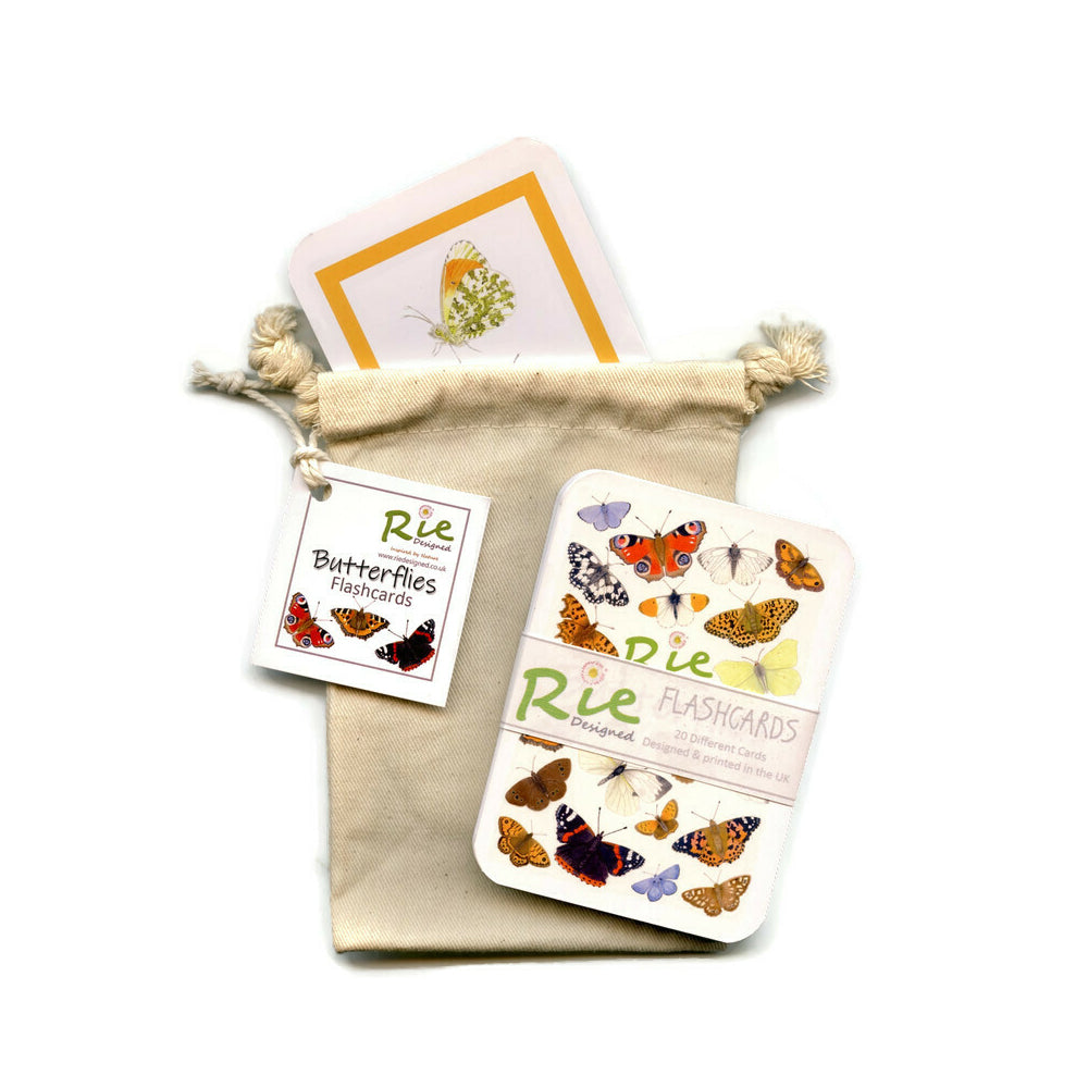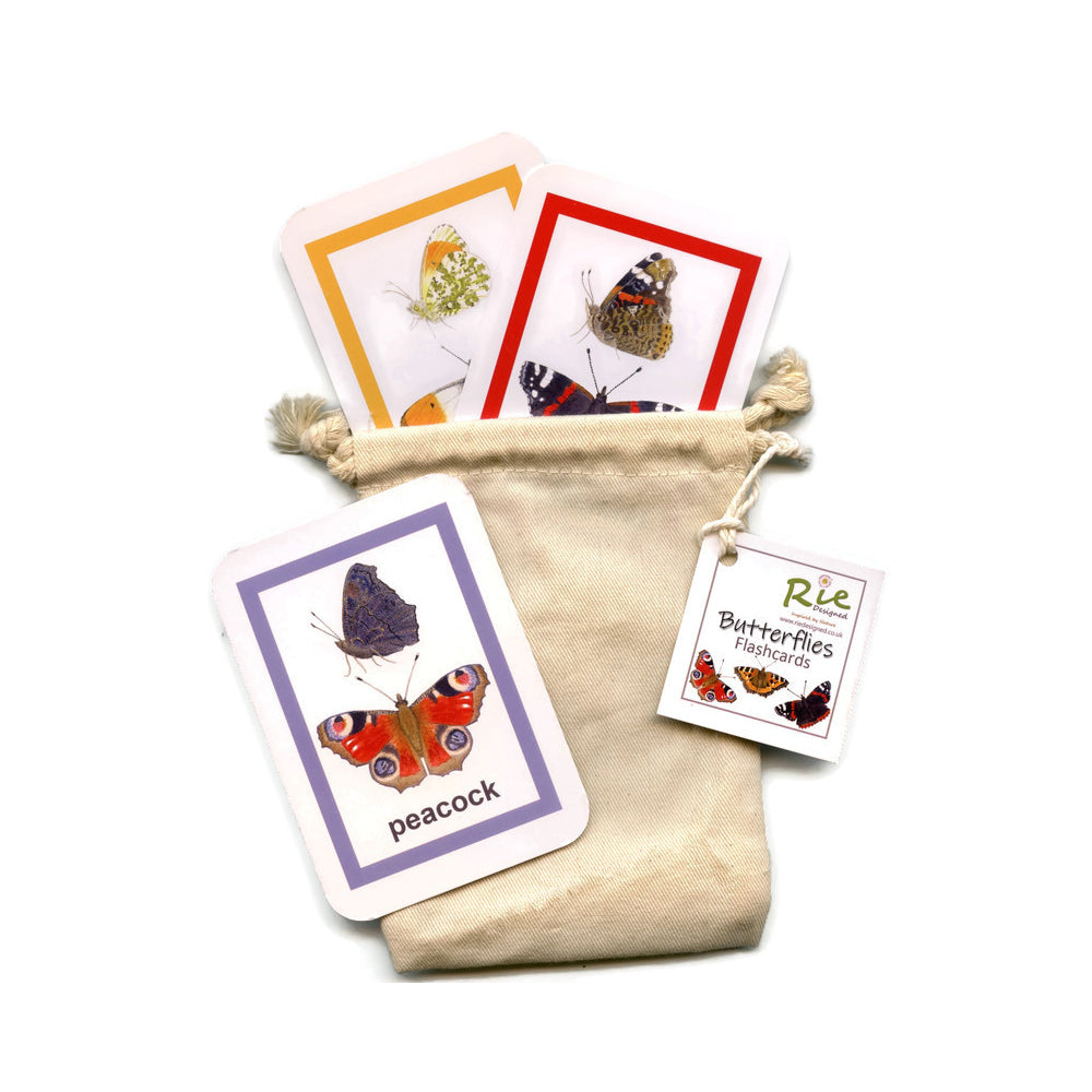 A set of 20 realistic identification flash cards in bio organic cotton bag.