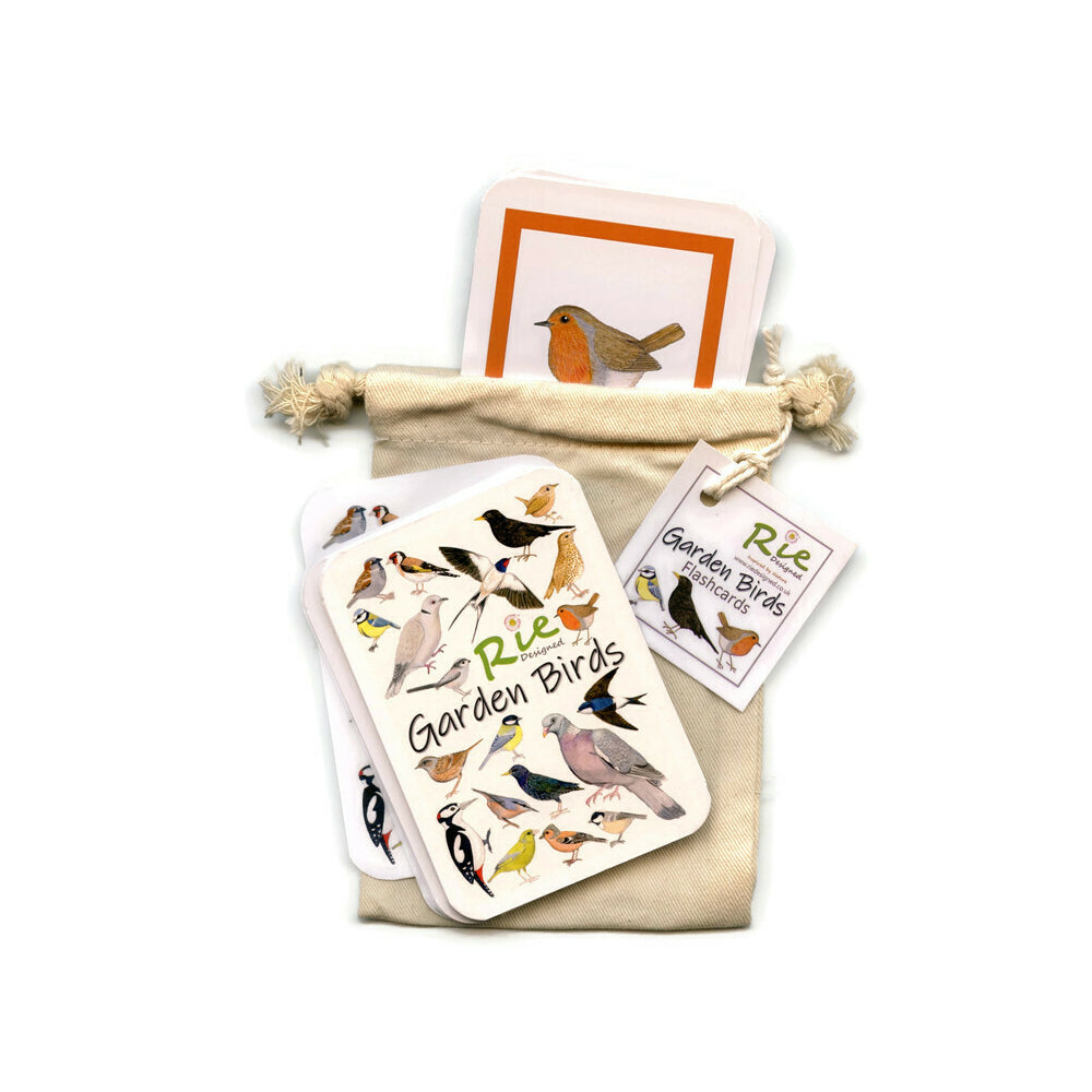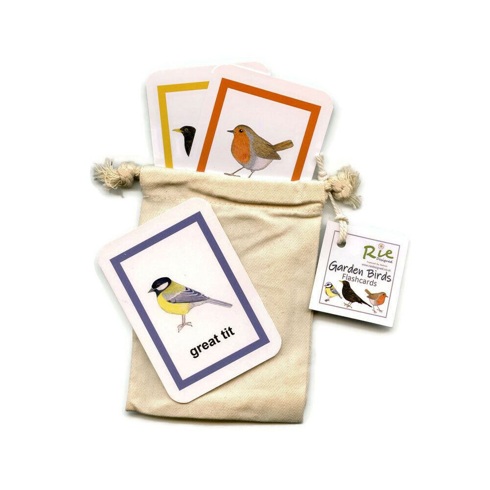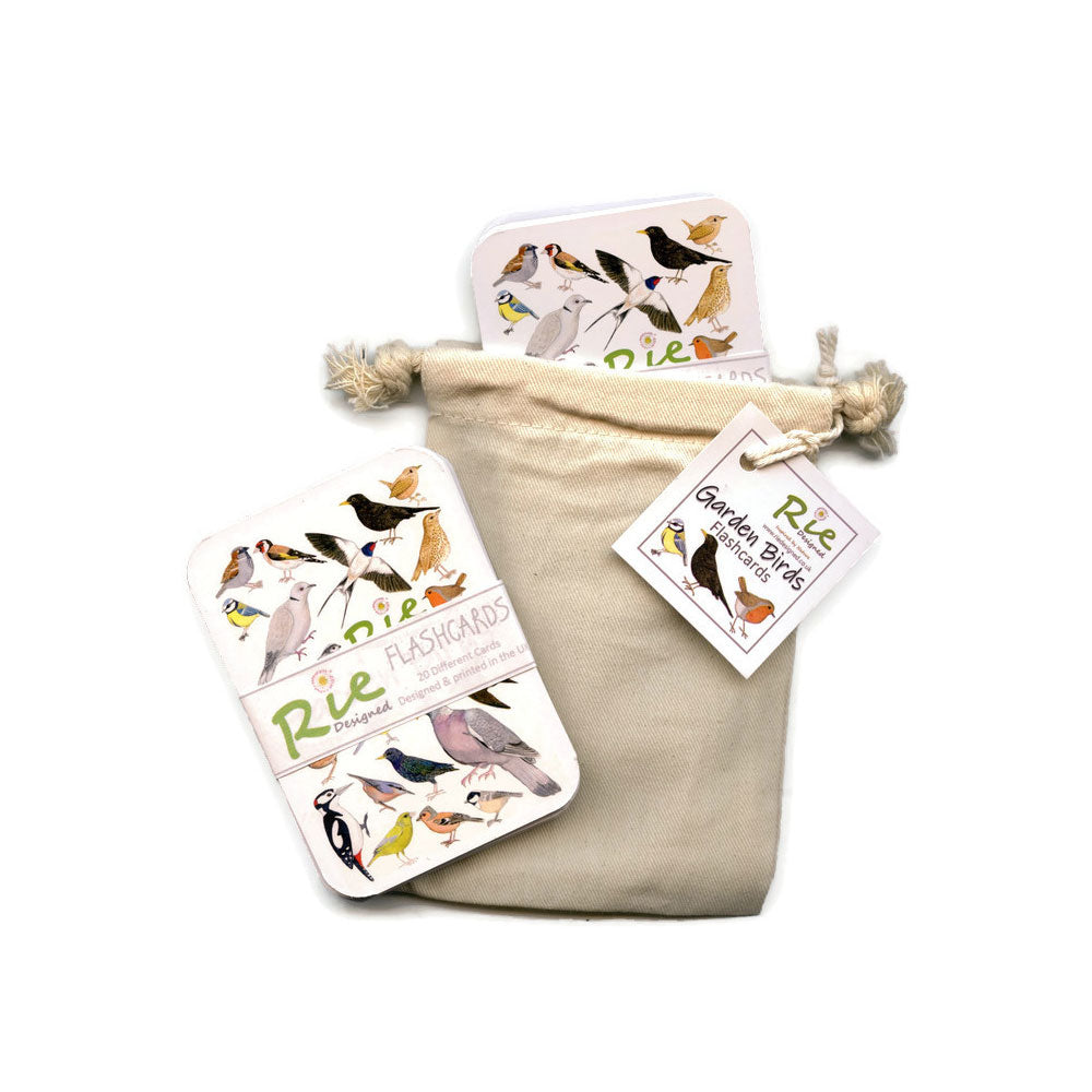 A set of 20 realistic identification flash cards in bio organic cotton bag.