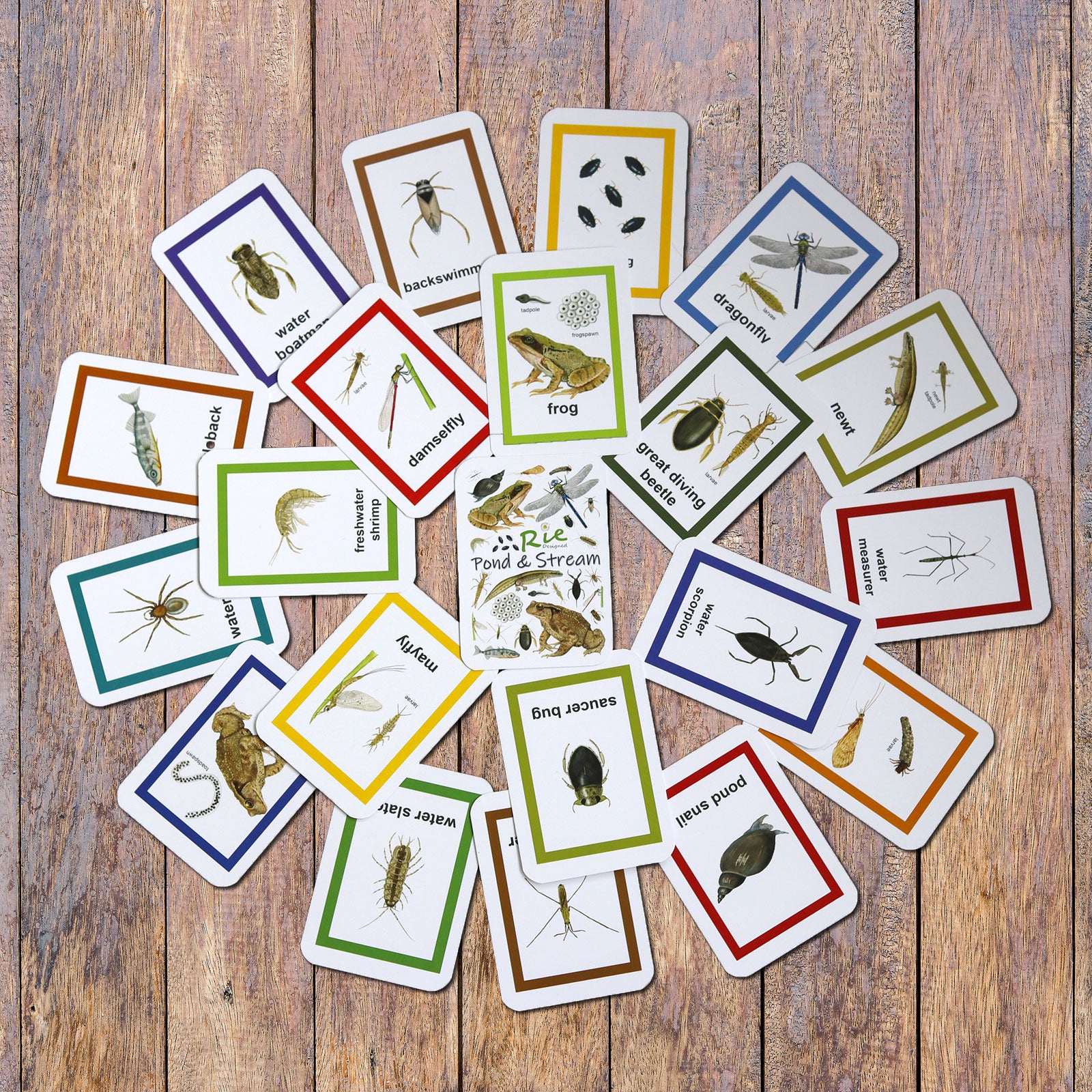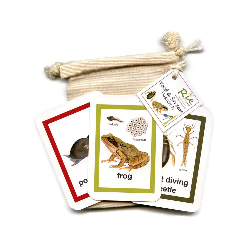 A set of 20 realistic identification flash cards in bio organic cotton bag.