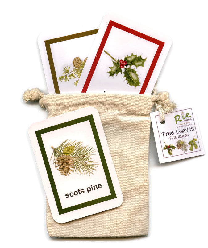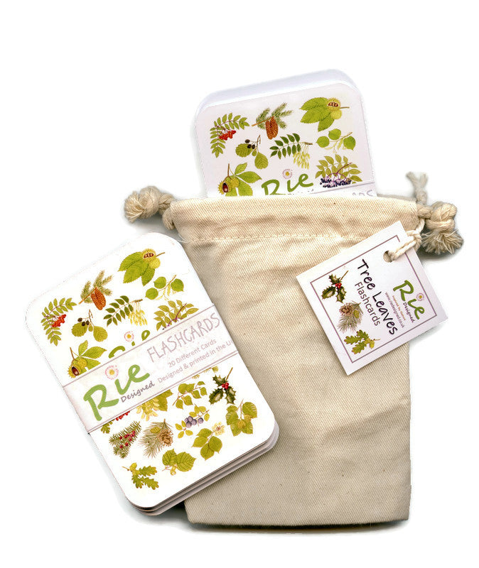 A set of 20 realistic identification flash cards in bio organic cotton bag.