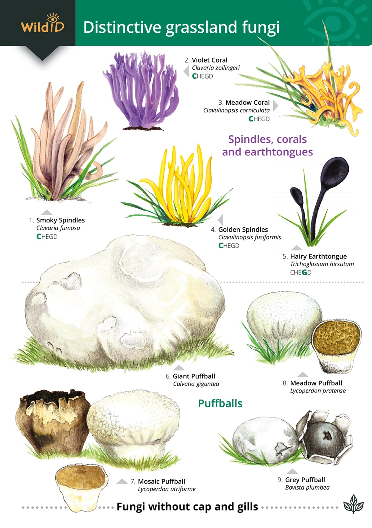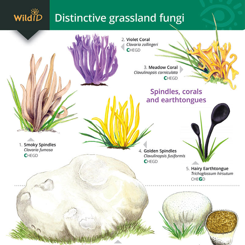 The Distinctive grassland fungi guide covers 40 species of spindles, corals, earthtongues, waxcaps, puffballs and more in Britain and Ireland.