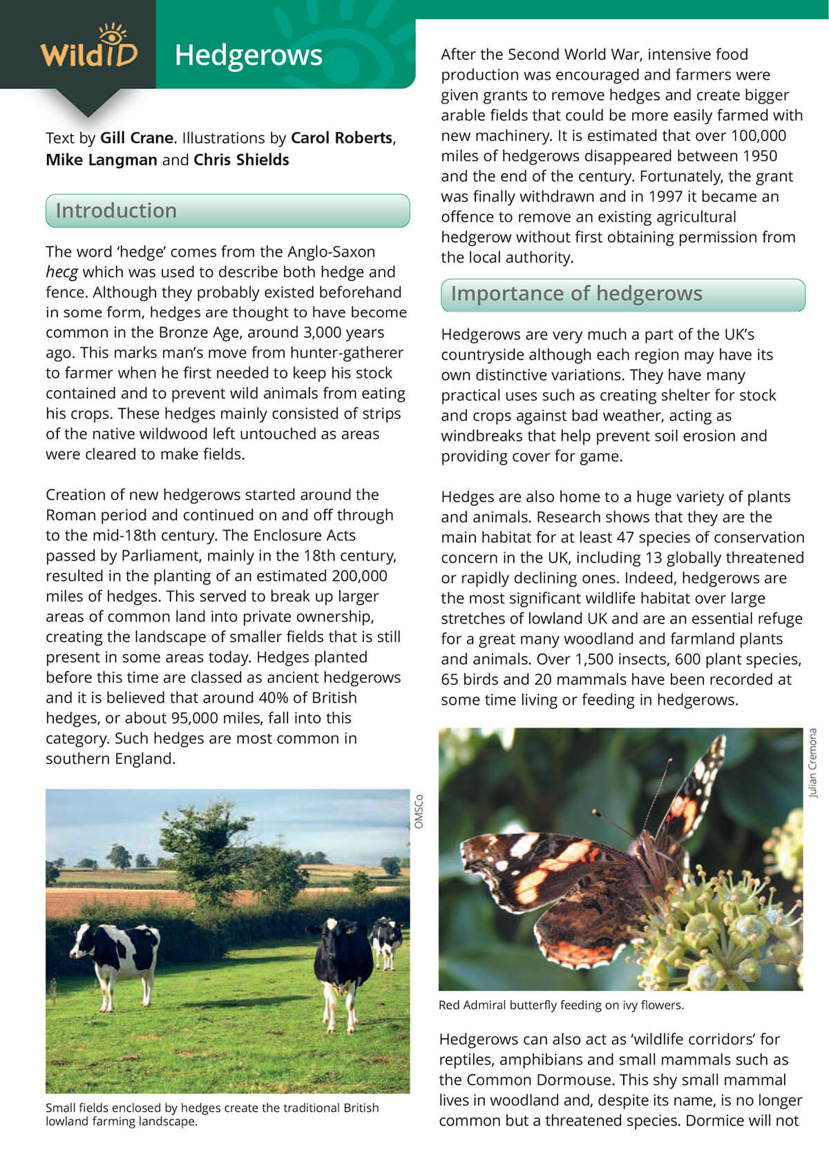This 8 page Identification Guide covers the flora and fauna of Britain's hedges - text by Gill Crane, illustrations by Carol Robers, Mike Langman and Chris Shields. Each chart is laminated to make it splashproof and robust for use outdoors. Clear colour illustrations and text by experts in the subject make these valuable resources for all age groups.