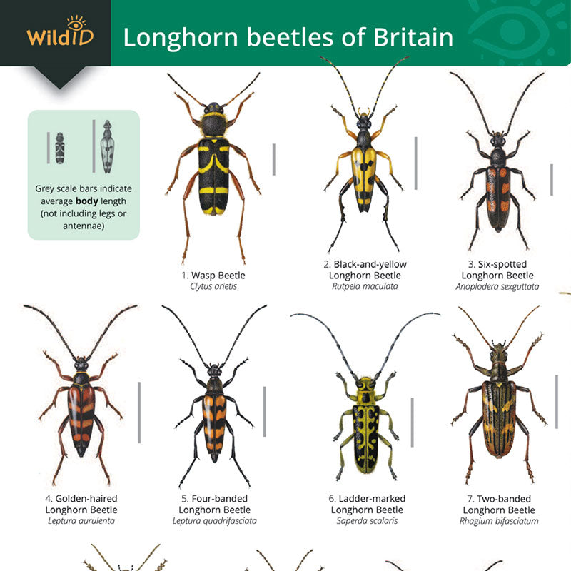 Beautiful colour paintings by acclaimed artist Richard Lewington show the key markings and body shape of each species. Text on the reverse side includes a comprehensive identification table, covering the status, distribution, habitat and size of the 42 longhorn beetles in the guide.