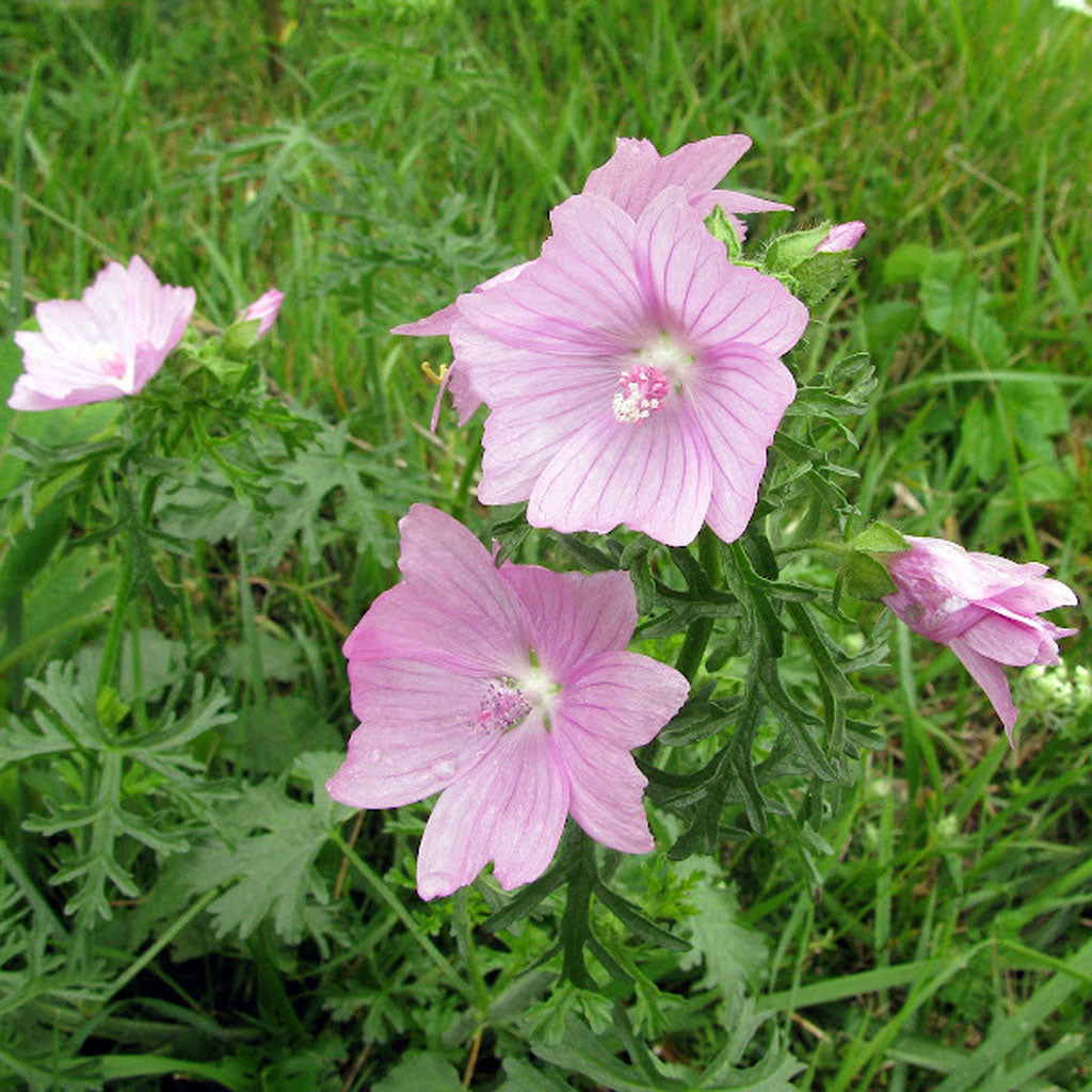 Musk mallow is a perennial wildflower native to southern England, common in hedgerows, field margins and along roadside verges. It has pretty pink summer flowers with a gentle, musky fragrance.