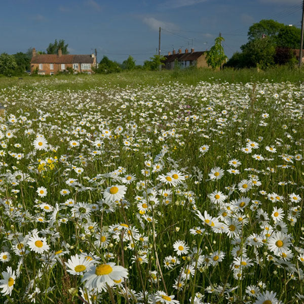 Large white daisy-like flowers with yellow centres on long stalks. This native wildflower is commonly found growing in bold swathes on grassy banks and roadside verges from June to August. Perfect for naturalising in sunny wildflower meadows where it will create a carpet of flowers.