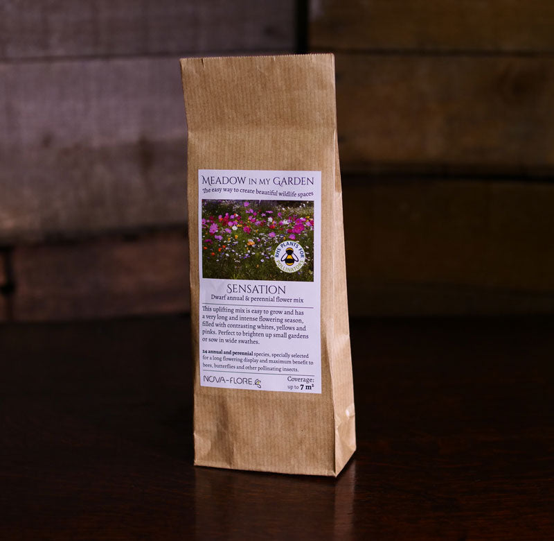The original and most popular of our short flower meadows. Sensation has a very long and intense flowering season full of contrasting whites, yellows and pinks. This easy to grow mixture is particularly popular for small flower beds around the house, providing a brightness and harmony of colours.