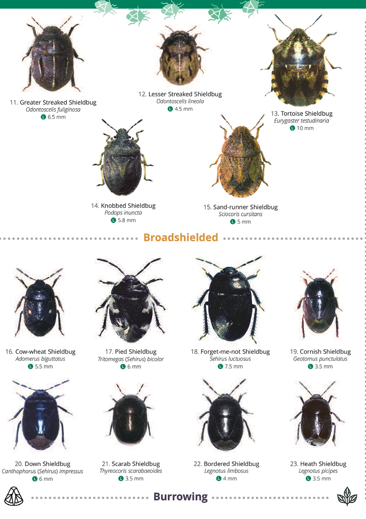 Note that this guide covers shieldbugs of the British Isles belonging to the families Acanthosomatidae, Cydnidae, Scutelleridae, Thyreocoridae, and Pentatomidae, as well as the ‘honorary shieldbugs’ from the family Coreidae. Over the last 20 years, many species have expanded their range northwards.