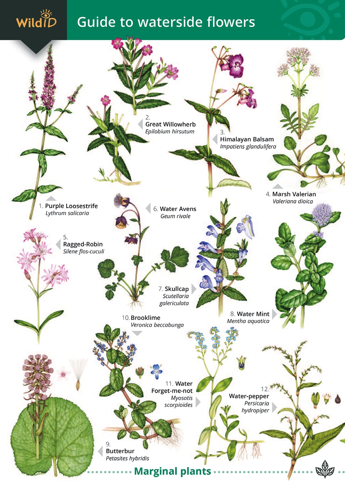 The Waterside flowers guide covers 46 of the special flowers that you may see on walks by still and moving water in Britain and Ireland. Still water includes ponds, reservoirs, lakes and canals, while moving water covers ditches, streams and rivers.