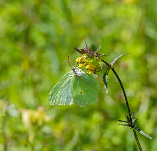 Yellow rattle is a grassland annual with yellow, two lipped flowers, the upper lip with two white or purple teeth. Behind the flower the joined sepals inflate to form a green bladder sometimes tinged with red.